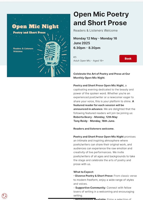 Open Mic – Monday 12 May @ 6:30 Linenhall Castlebar / Roberta Beary featured reader